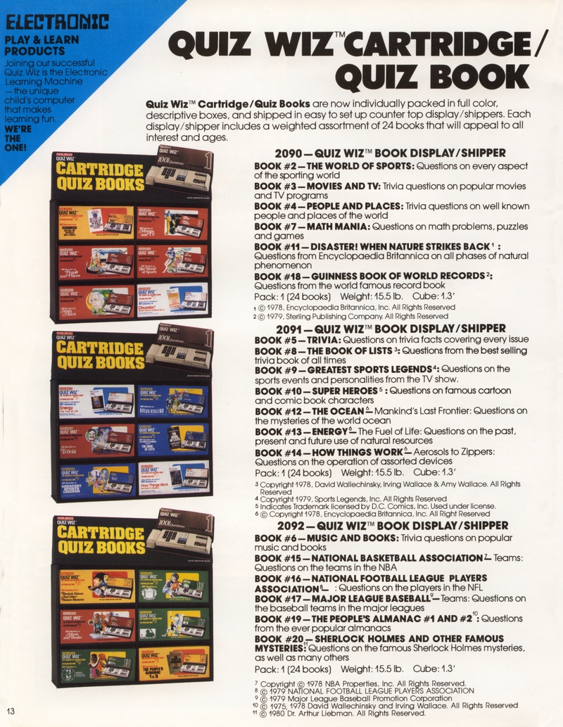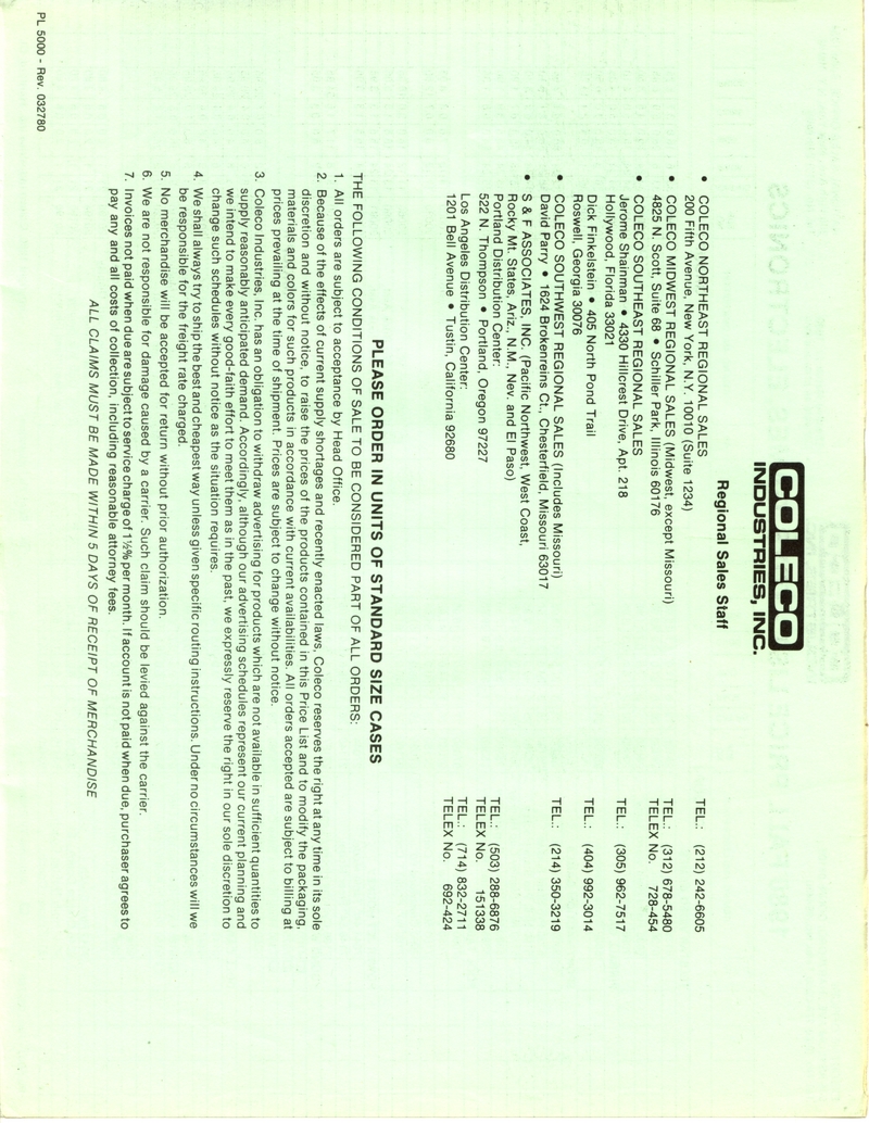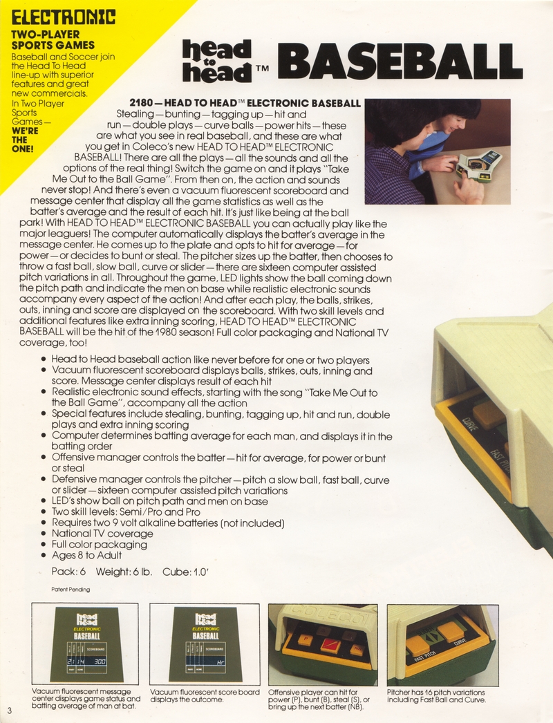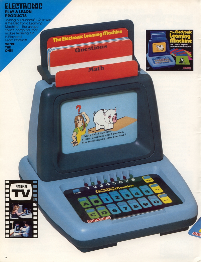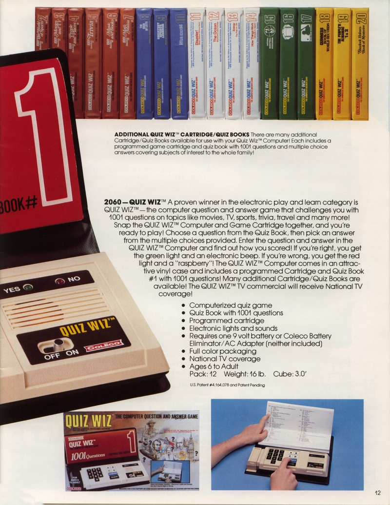 | DESCRIPTION | Coleco Toys and Games '80 - We're the One: Catalog of electronic, plastic, and variant toys from Coleco for the 1980 store season. This catalog was intended for chains and purchasers for stores to browse through and buy Coleco products by the truckload. Therefore, the prices are on a separate green sheet of paper, and the catalog itself focuses on top-quality shots of all the toys. Toys include electronic football, hockey, socker and basketball games, Quiz Wiz, Lil Genius, Zodiac, Colortron, Marksman, Cycle Speedway, Power Jet Hockey, and a wide range of toboggans and plastic pieces rebranded as "slide-a-boggans". Also has a range of strollers and baking ovens. Great colors, great descriptions, many dreams inside. (1980) |