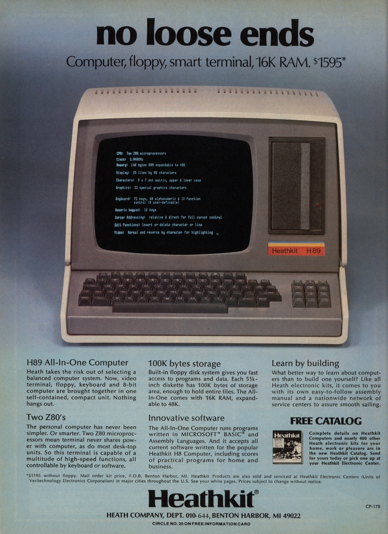 | DESCRIPTION | Ad for Heathkit H89 microcomputer, with feature set and storage availability (100k!) From Popular Electronics April 1980 issue (1980) |