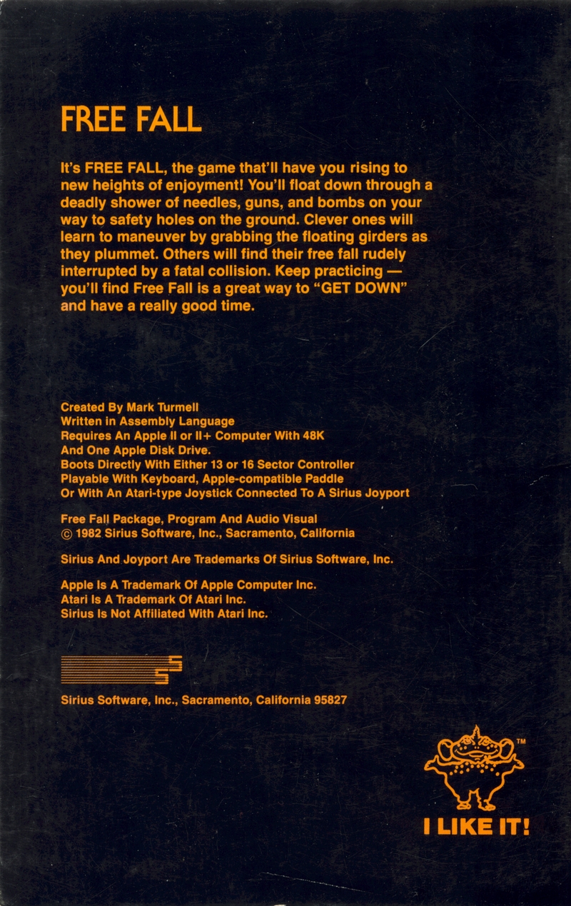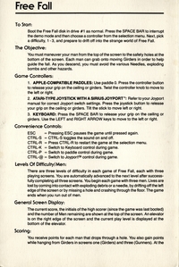 | DESCRIPTION | Documentation for the game "Free Fall", a fast action game from Sirius for the Apple II or II+ Computer with 48k and One Apple Disk Drive (1982) |