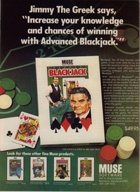 | DESCRIPTION | Jimmy the Greek says: Increase your knowledge and chances of winning with Advanced Blackjack, from Muse Software. Ad appeared in Electronic Games Magazine, December 1983 (1983) |