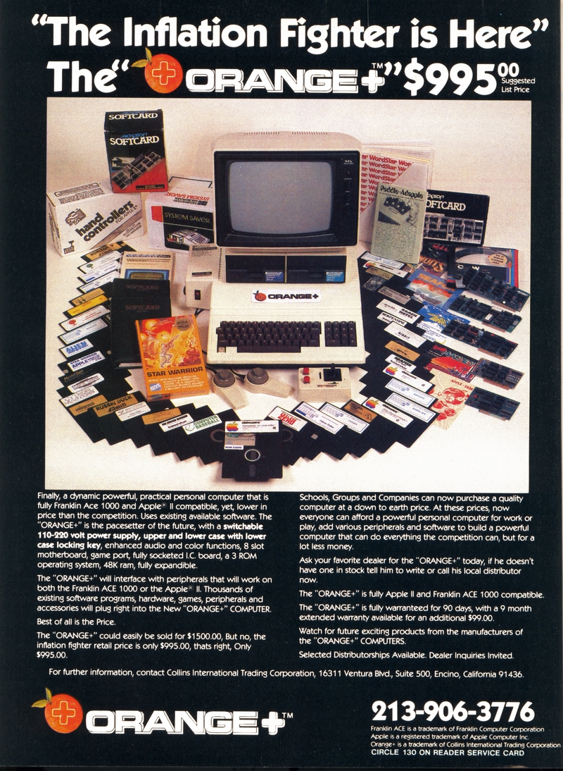 | DESCRIPTION | Advertisement for the Orange+ Computer, an Apple II Clone from Collins International Trading Corporation (1984) |