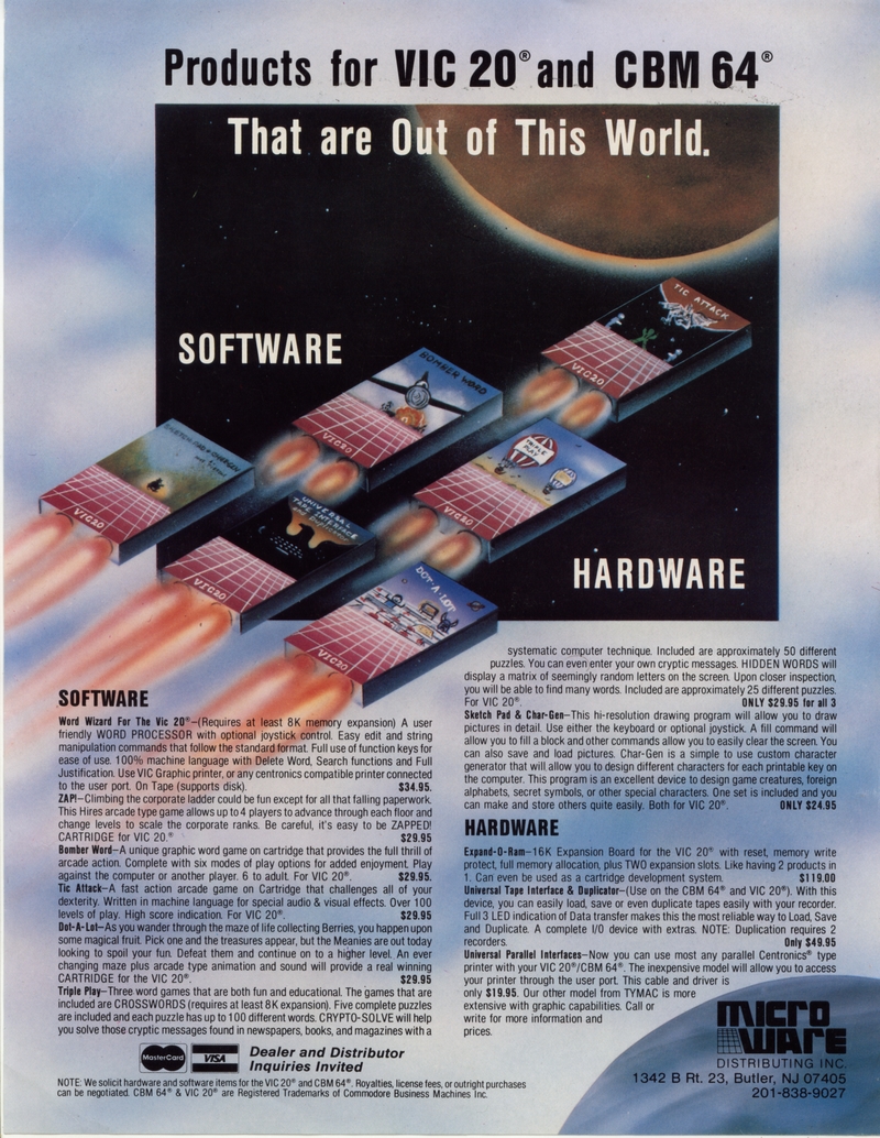 | DESCRIPTION | Microware Products Catalog: "Products for Vic-20 and CBM 64 that are Out of This World" (1984) |