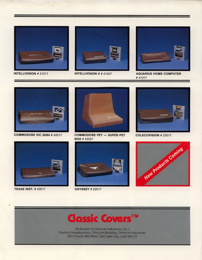 | DESCRIPTION | Catalog for slipcovers and duffel bags for Atari Computers and Consoles, as well as Intellivision and Colecovision (1984) |