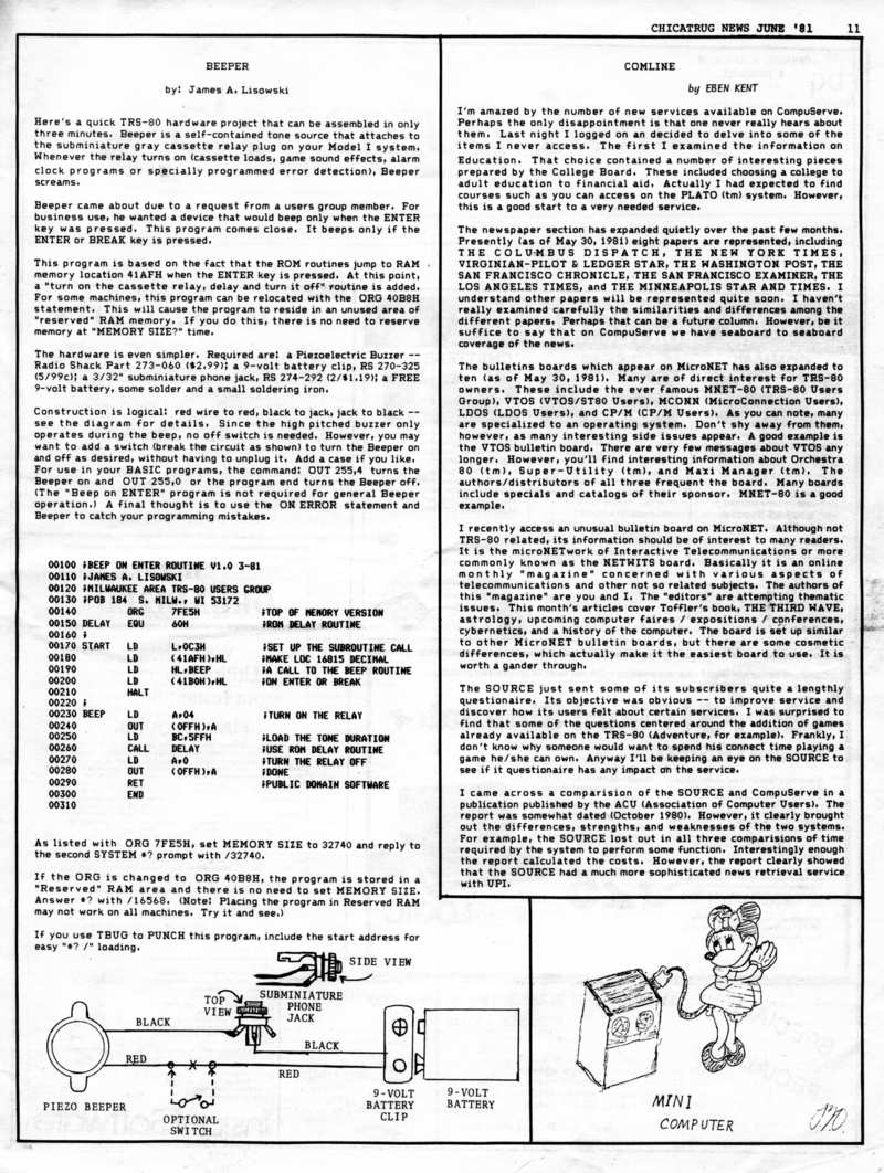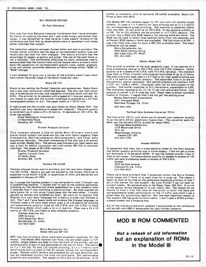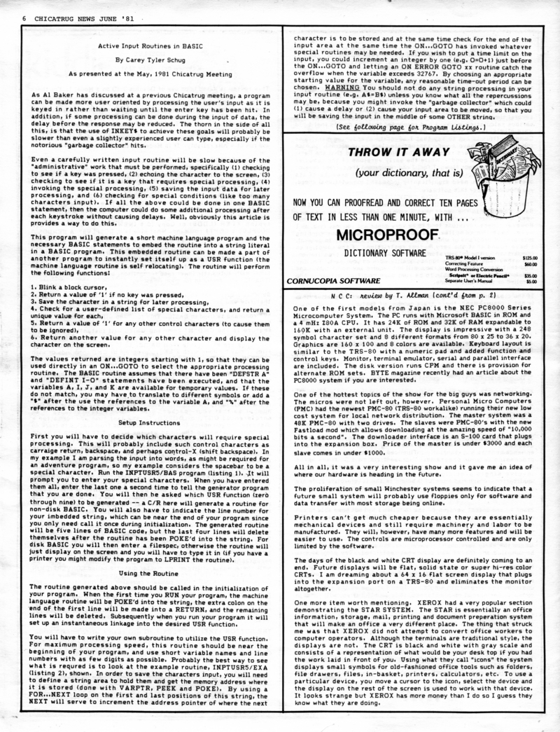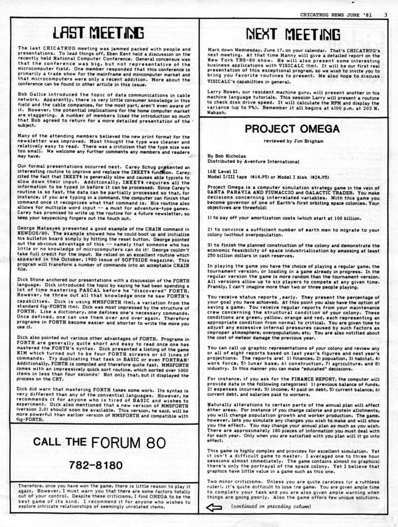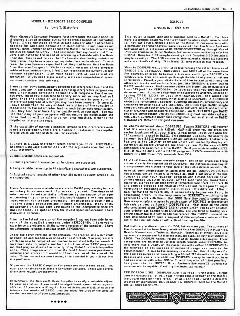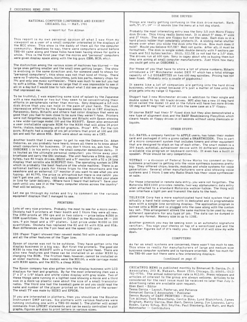 | DESCRIPTION | The June 1981 edition of the Chicatrug News, the Chicago TRS-80's Users Group Newsletter. "All the TRS-80 News You Need, When You Need It". |