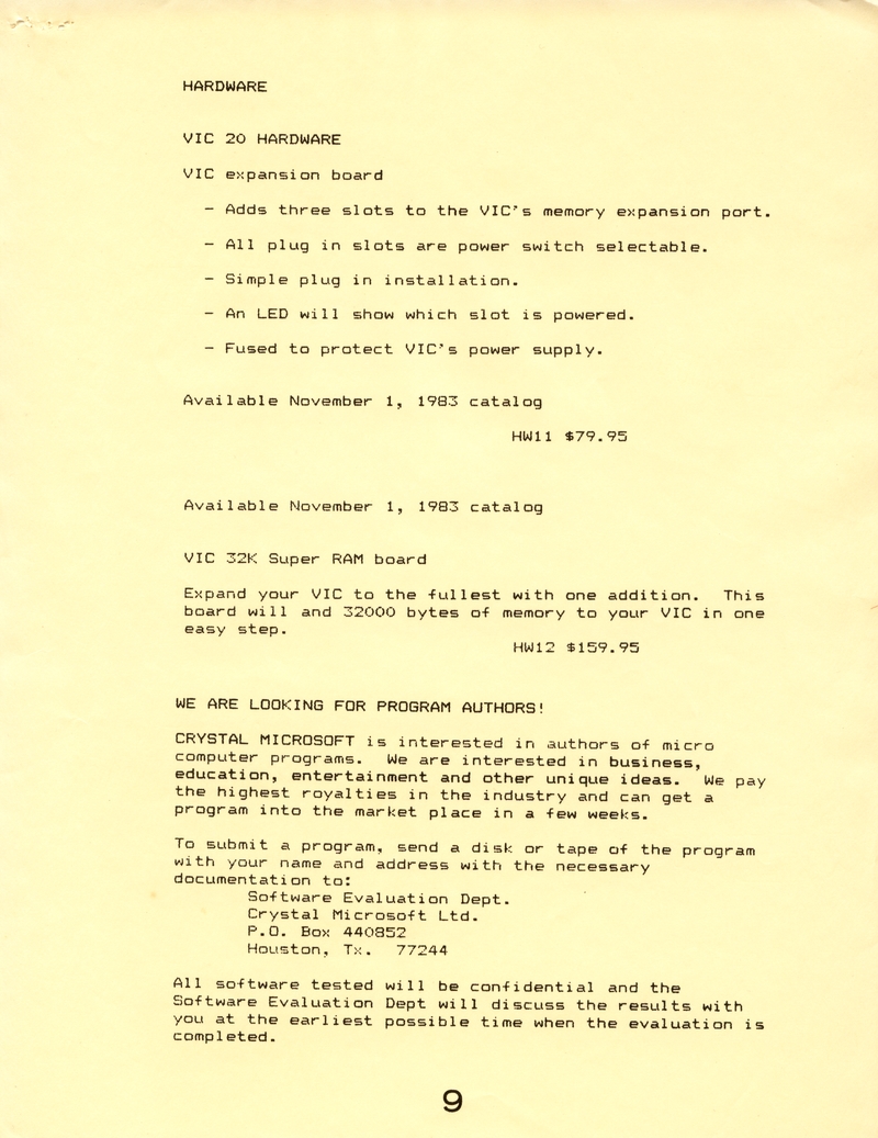 | DESCRIPTION | 1983 Catalog for Crystal Microsoft, Ltd., a Texas-Based Computer Software and Hardware company with no relation to that "other" Microsoft (1983) |