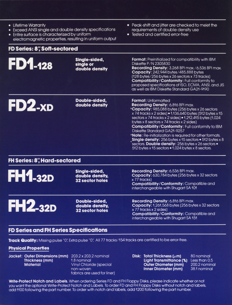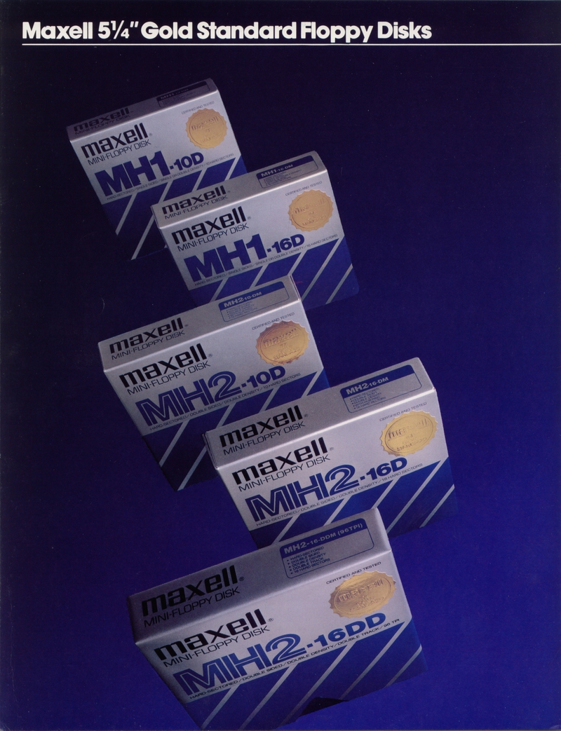 | DESCRIPTION | The Maxell Corporation's 1983 selection of Floppy Disks (5 1/4", 8", and Compact) as well as other recording media, presented in dazzling color. (1983) |
