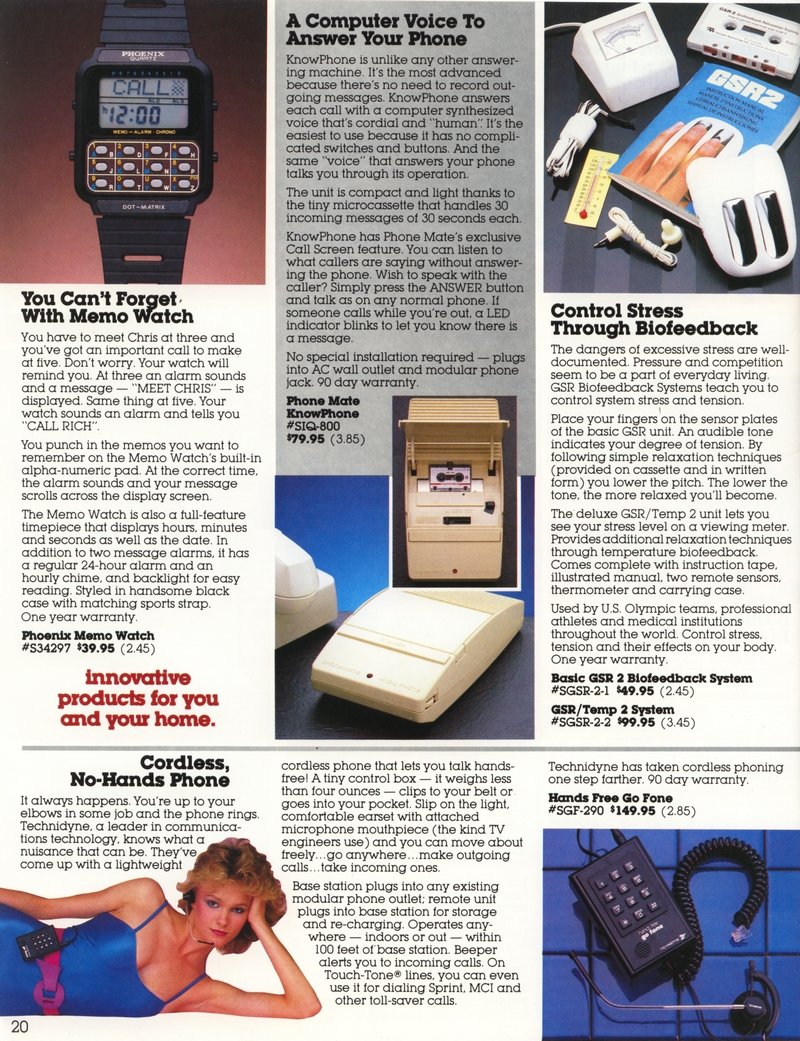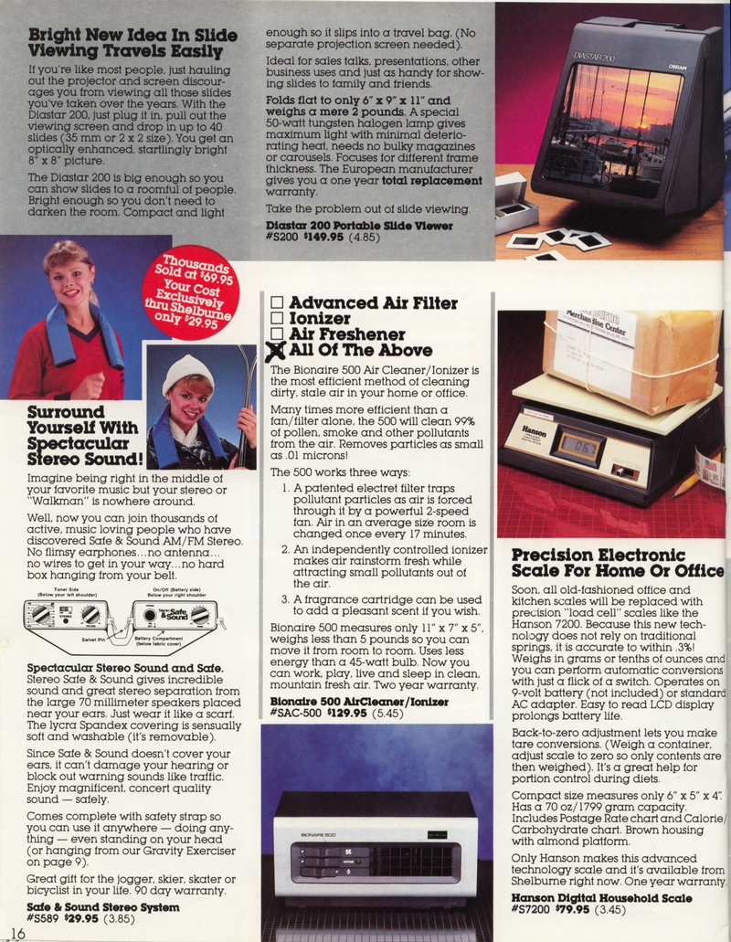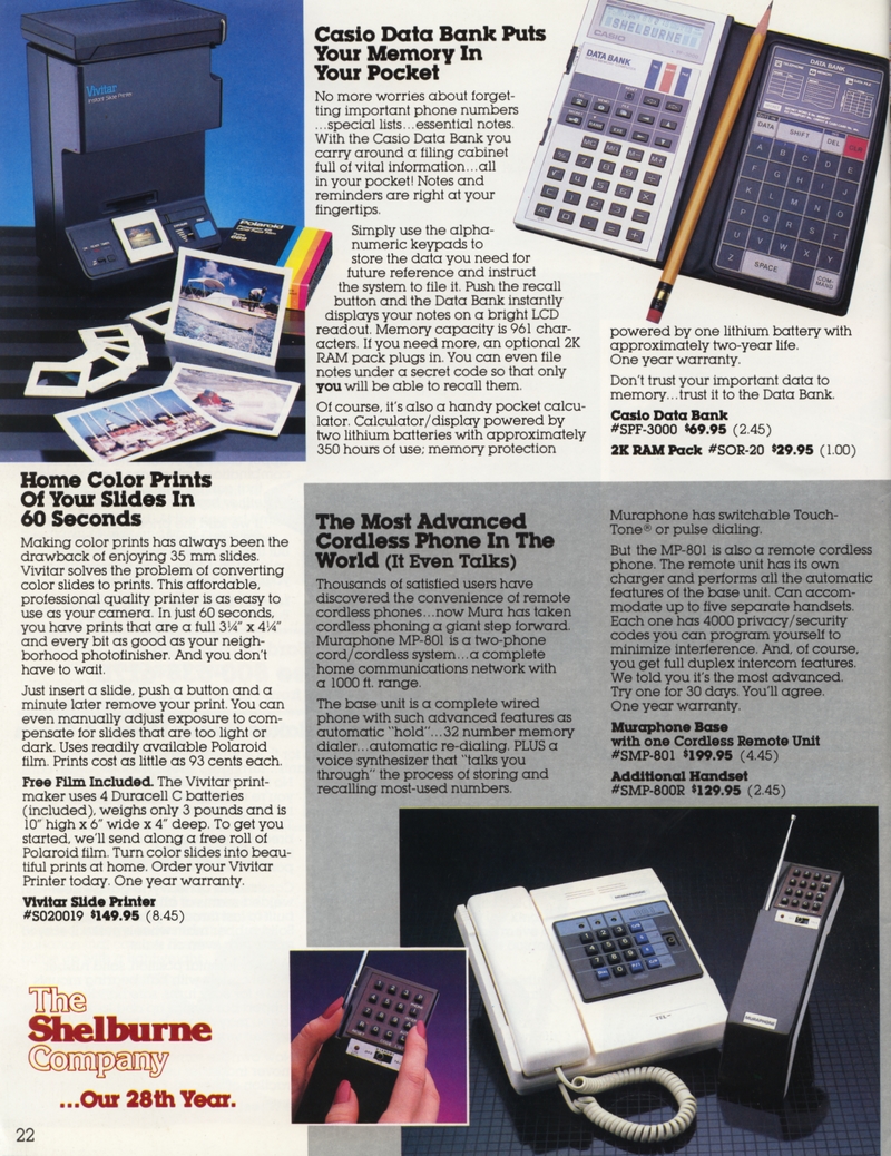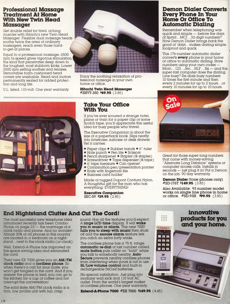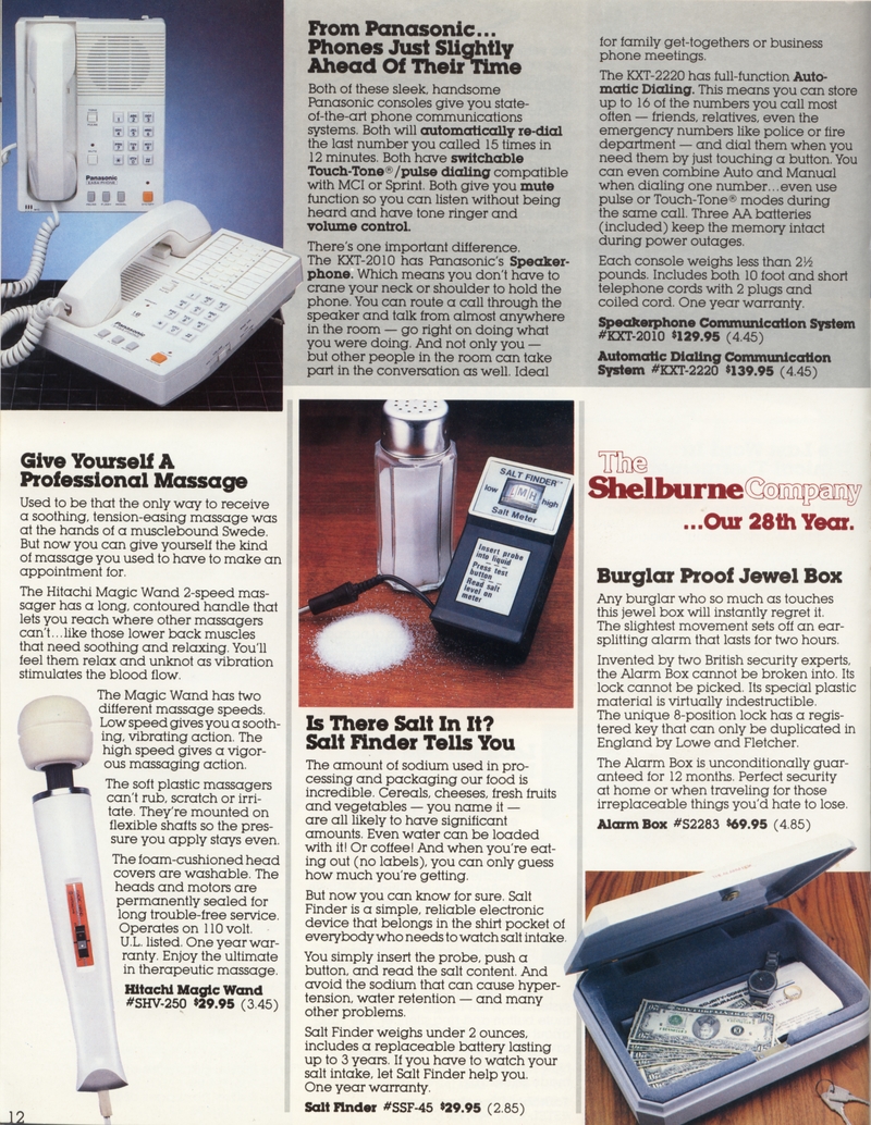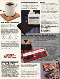| DESCRIPTION | The 1983 Winter/Holiday catalog for The Shelburne Company (later Shelburne Innovations), a direct-mail Consumer Electronics company (with a now-closed showroom in Maryland). 28 pages of classic early-1980 consumer electronics, from the areas of telecommunications, health, gadgetry and furniture. "Innovative Products for You and Your Home" Larry Demko writes: "The Shelburne Company catalog, later called INNOVATIONS, was created and produced by Larry Demko, who wrote much of the copy. He was VP of the company and also created & wrote space (print) ads for various products and services that appeared in the New York Times, Wall Street Journal, Parade Magazine, Popular Science and many other publications. He tried to purchase the catalog in 1985. When he could not reach an agreement with the majority ownership, he left to join another direct marketing company (and catalog) in St. Louis. A few years later he left to start his own marketing /advertising firm which is now called Fastrac Media in St. Louis, MO. In addition to print ads, he now writes and produces TV commercials and infomercials." (1983) |