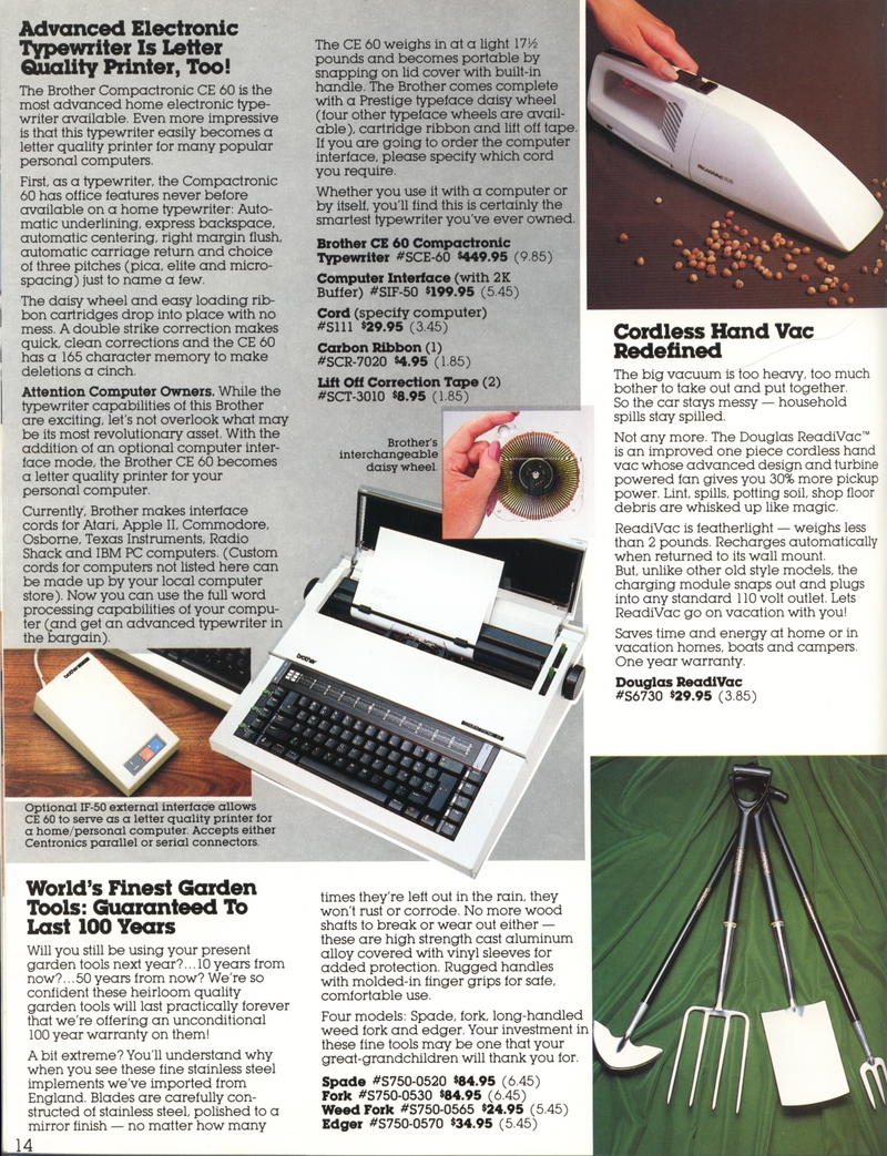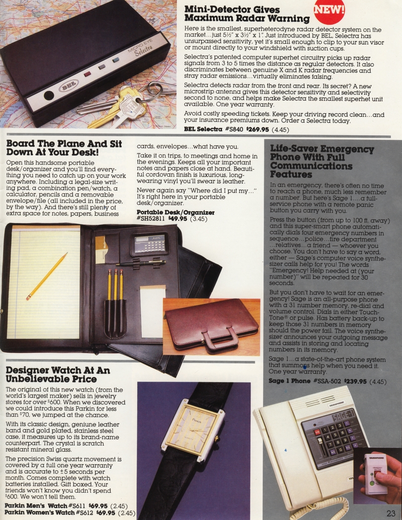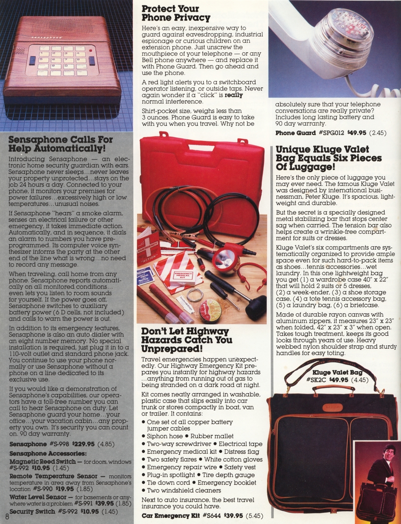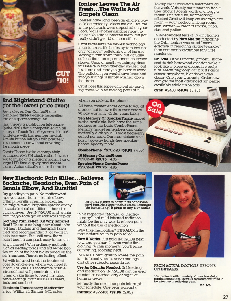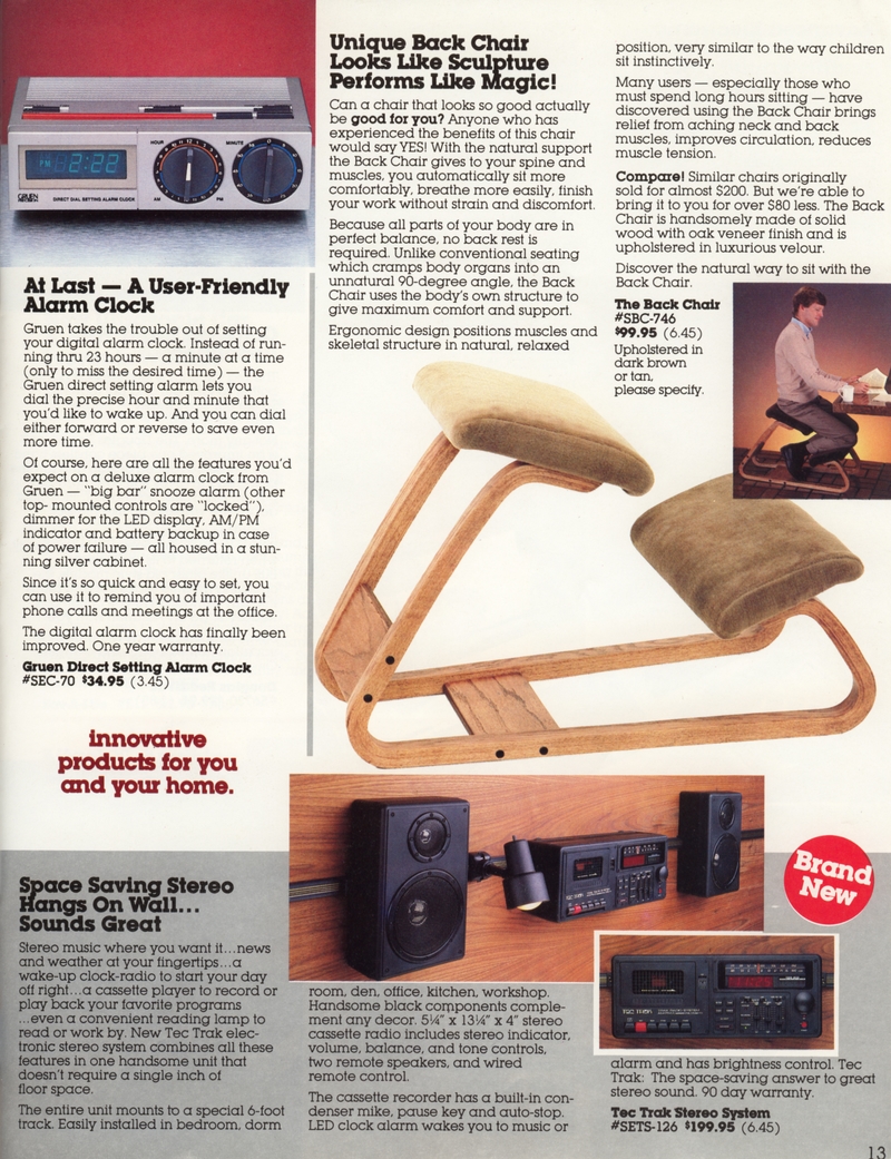 | DESCRIPTION | The 1983 Winter/Holiday catalog for The Shelburne Company (later Shelburne Innovations), a direct-mail Consumer Electronics company (with a now-closed showroom in Maryland). 28 pages of classic early-1980 consumer electronics, from the areas of telecommunications, health, gadgetry and furniture. "Innovative Products for You and Your Home" Larry Demko writes: "The Shelburne Company catalog, later called INNOVATIONS, was created and produced by Larry Demko, who wrote much of the copy. He was VP of the company and also created & wrote space (print) ads for various products and services that appeared in the New York Times, Wall Street Journal, Parade Magazine, Popular Science and many other publications. He tried to purchase the catalog in 1985. When he could not reach an agreement with the majority ownership, he left to join another direct marketing company (and catalog) in St. Louis. A few years later he left to start his own marketing /advertising firm which is now called Fastrac Media in St. Louis, MO. In addition to print ads, he now writes and produces TV commercials and infomercials." (1983) |