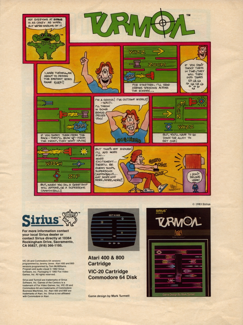 | DESCRIPTION | The Sirius Software Summer 1983 Game Catalog, listing the full collection of Sirius software games, all accompanied by poorly-drawn comics portraying each game's premise as a story involving cartoon characters (1983) |