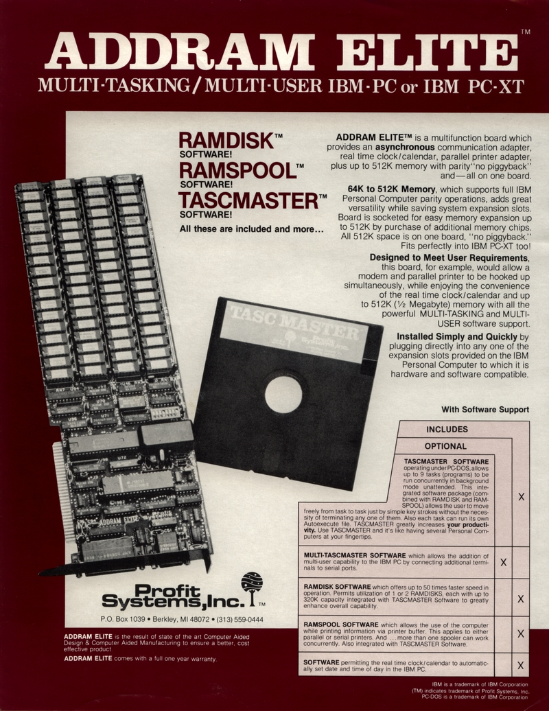 Advertisement for IBM PC RAM Expansion by Profit (1984)
